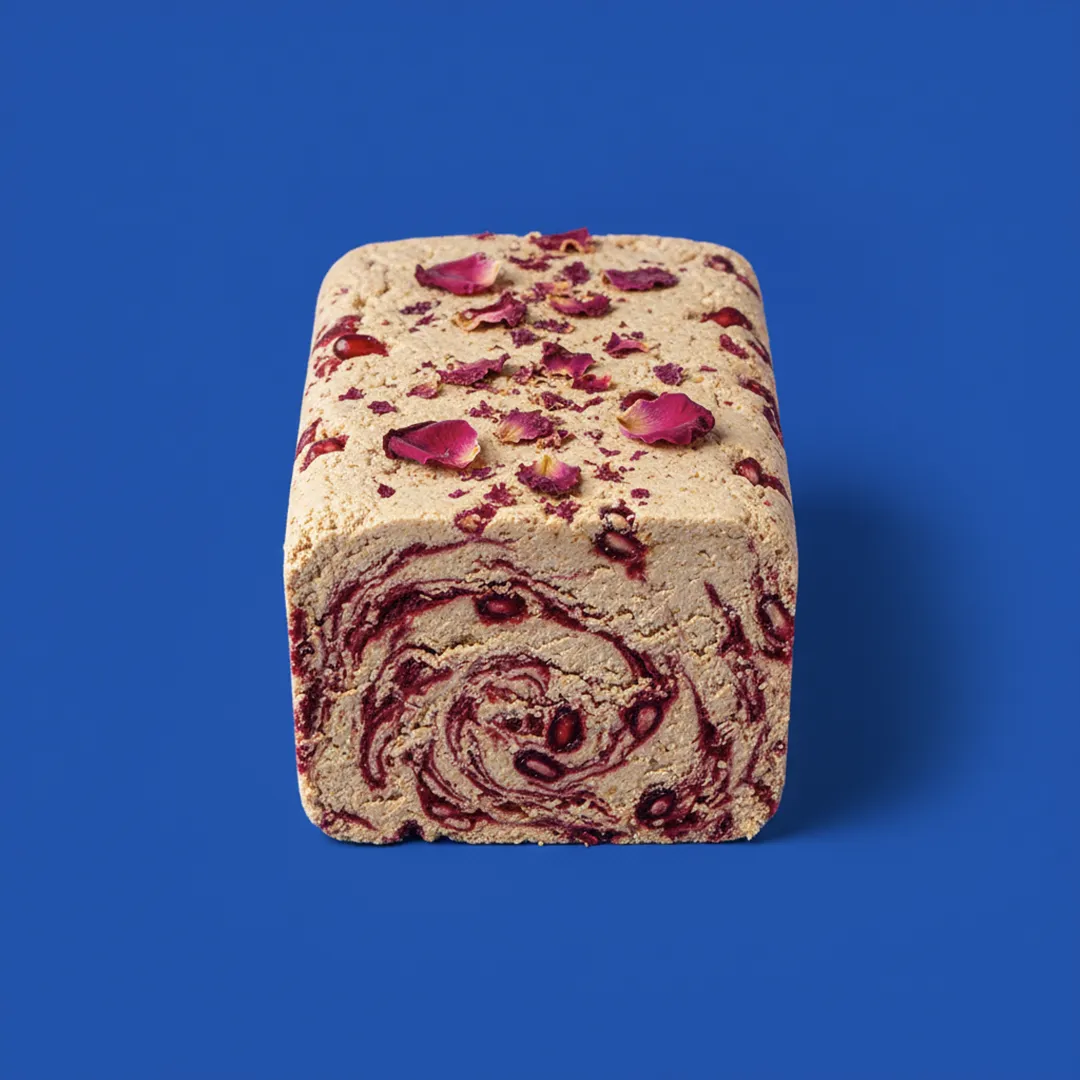 Chałwa sezamowa bez cukru o smaku granatu z płatkami róży